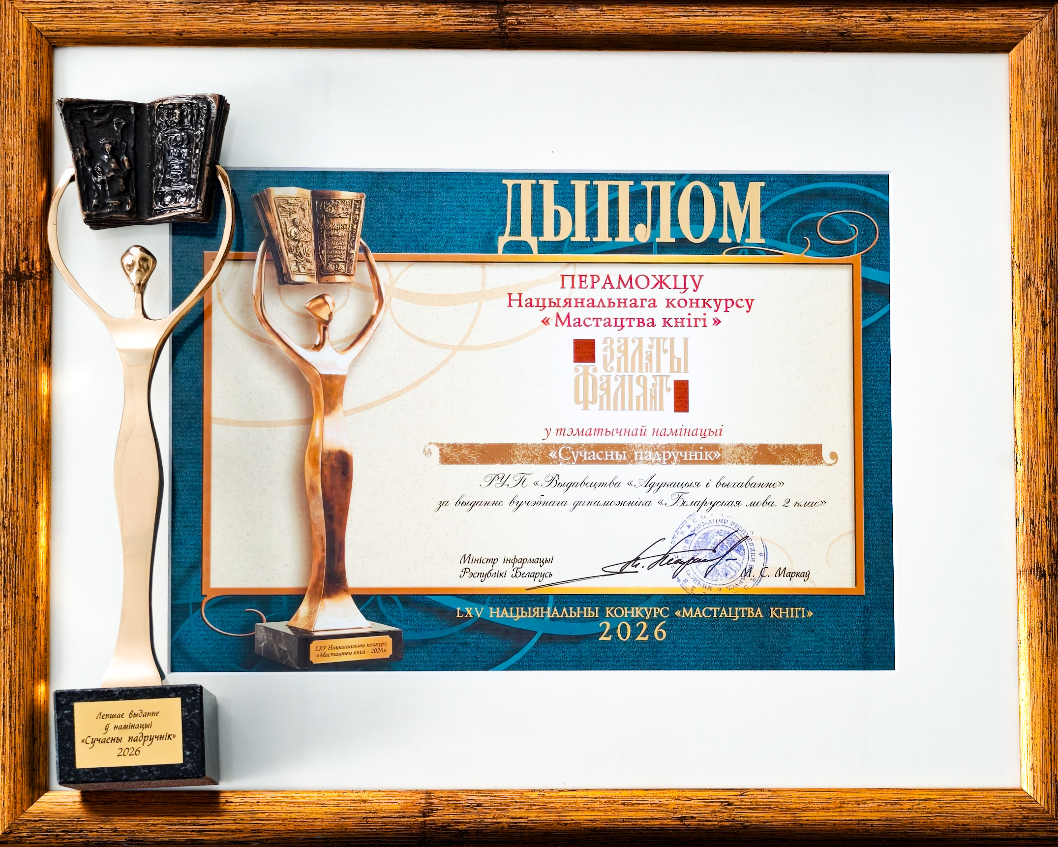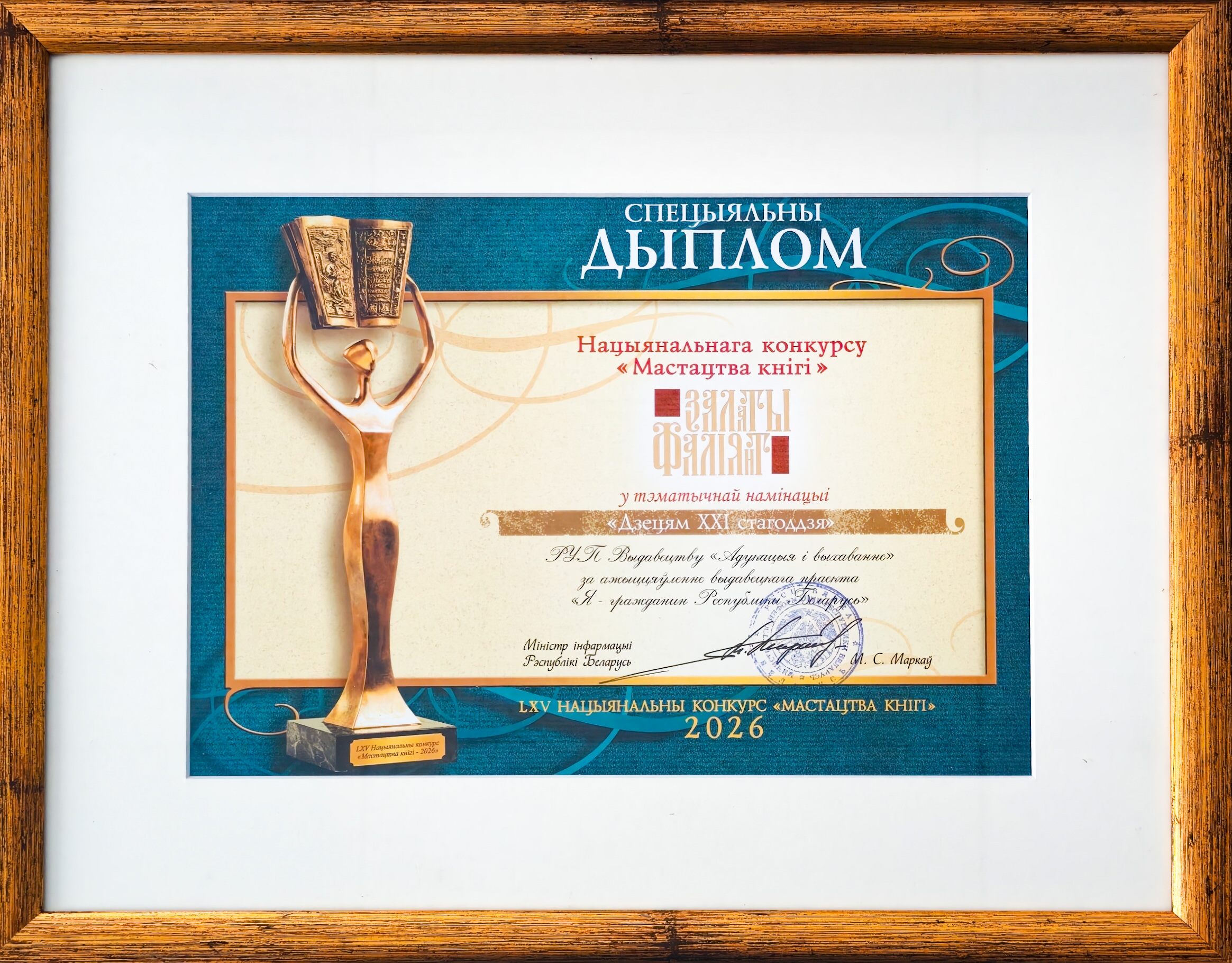 Диплом победителя LXIII Национального конкурса «Мастацтва кнігі» 2024 в номинации «Сучасны падручнік» издательство получило за комплект учебных пособий «Геноцид белорусского народа в годы Великой Отечественной войны» (для 1–4, 5–9 и 10–11 классов, авторы: В. В. Толкачёв, В. А. Финевич, В. В. Таратынко и др.).