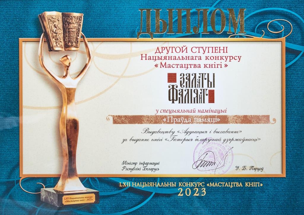 В номинации «В зеркале времени» издательский проект «Сделано в Беларуси. Знак качества» (сост. А. Г. Мерников, К. В. Пекарь) получил специальный диплом.