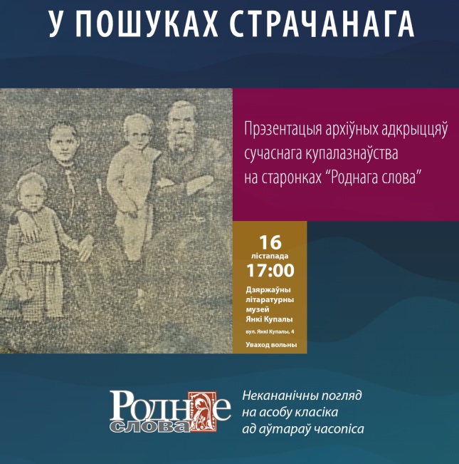 Найденная фотография раскрыла некоторые тайны, которые дополняют известные сведения из жизни поэта и в то же время оспаривают некоторые из них. Как выглядел маленький Янка Купала? Сколько детей было в семье? Какие браки семьи Луцевичей имеют документальное подтверждение? Это лишь некоторые вопросы, которые будут обсуждаться в ходе встречи, ее участниками станут литературоведы, музейные работники, генеологи и биографы Янки Купалы – постоянные и будущие авторы «Родного слова».