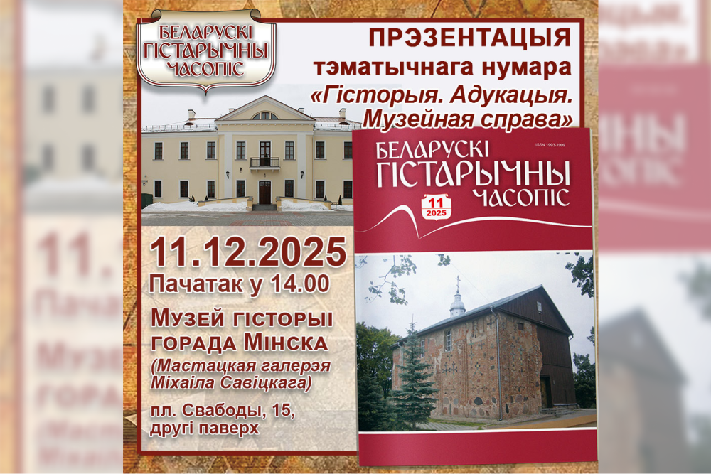 11 снежня ў 14:00 адбудзецца прэзентацыя тэматычнага нумара “Гісторыя. Адукацыя. Музейная справа”.