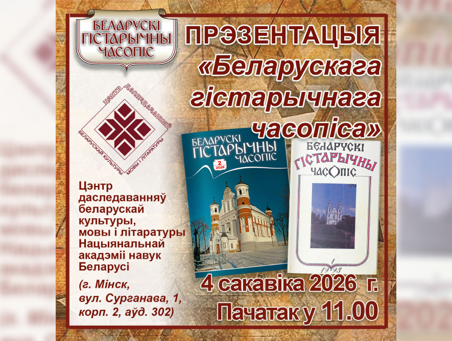 4 сакавіка ў 11:00 адбудзецца прэзентацыя “Беларускага гістарычнага часопіса”.