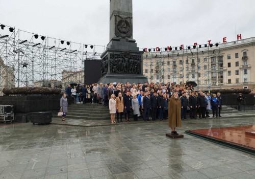 В рамках республиканской акции «Беларусь помнит» Министр образования Андрей Иванец, руководители и представители подчиненных организаций, в том числе издательства «Адукацыя і выхаванне», возложили цветы к Монументу Победы.