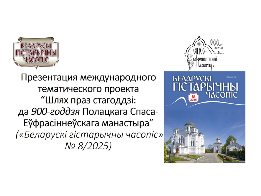 12 февраля 2025 г. в Музее белорусского книгопечатания Полоцкого Национального историко-культурного музея-заповедника состоялась презентация журнала «Беларускі гістарычны часопіс» (№ 8/2025) “Шлях праз стагоддзі: да 900-годдзя Полацкага Спаса-Еўфрасіннеўскага манастыра”.