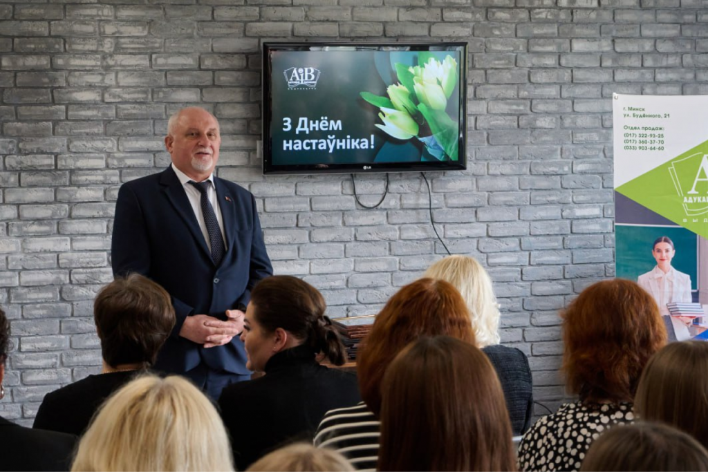 С поздравительным словом к присутствующим обратился директор издательства Валентин Янович Новогродский. Он поблагодарил коллег за добросовестный труд, подчеркнул важность вклада каждого сотрудника в развитие отечественного книгоиздания. «День учителя – это повод не только выразить признательность педагогам, но и поощрить тех, кто ежедневно работает над созданием качественных образовательных проектов», – отметил Валентин Янович.