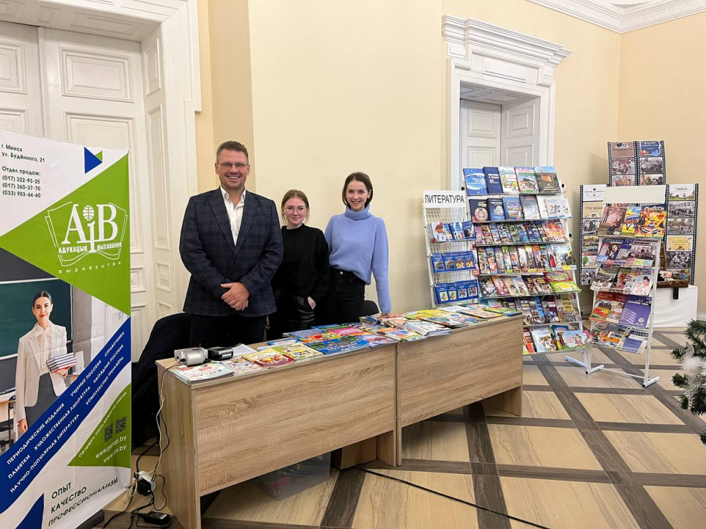Дмитрий Кошевар, начальник отдела маркетинга, познакомил собравшихся с историей издательства и направлениями работы. Особое внимание было уделено реализуемым проектам гражданско-патриотической направленности: сериям «Я горжусь!» и «Славим Родину трудом», изданию «Детям о Конституции: просто о главном», книге «Образование в Беларуси: истоки, история, современность». Также в рамках презентации были представлены журналы для детей на белорусском языке «Вясёлка» и «Буся» и научно-методический журнал для работников учреждений дошкольного образования «Пралеска», о котором подробнее рассказала его главный редактор Светлана Штабинская.