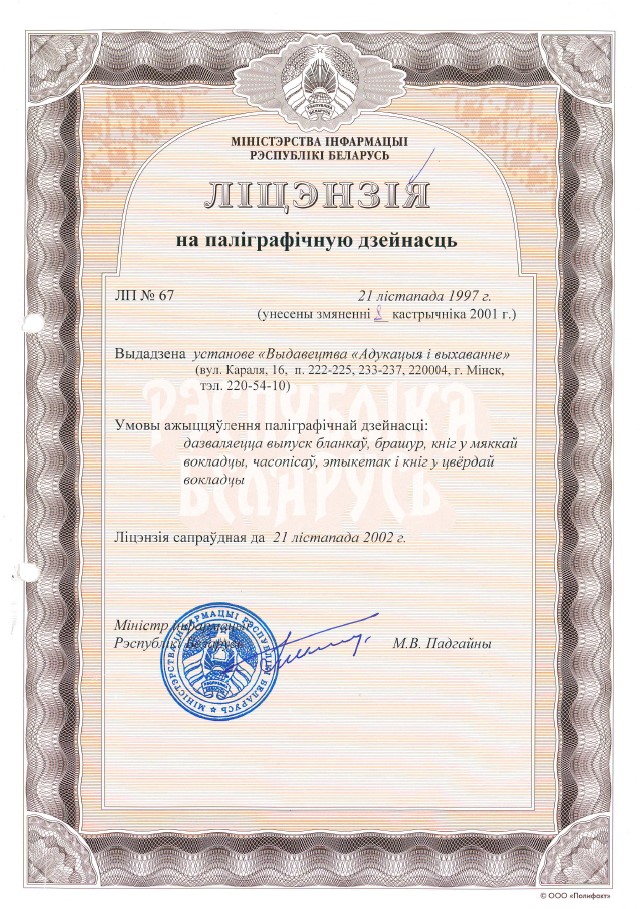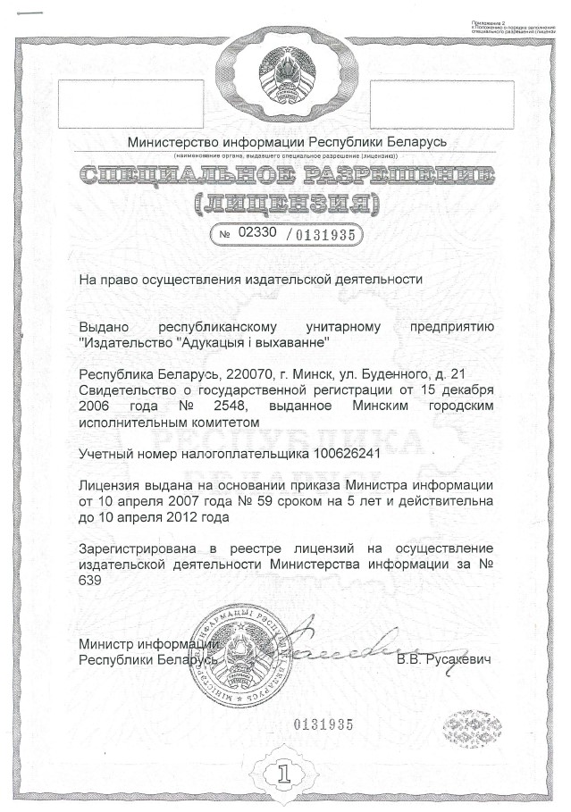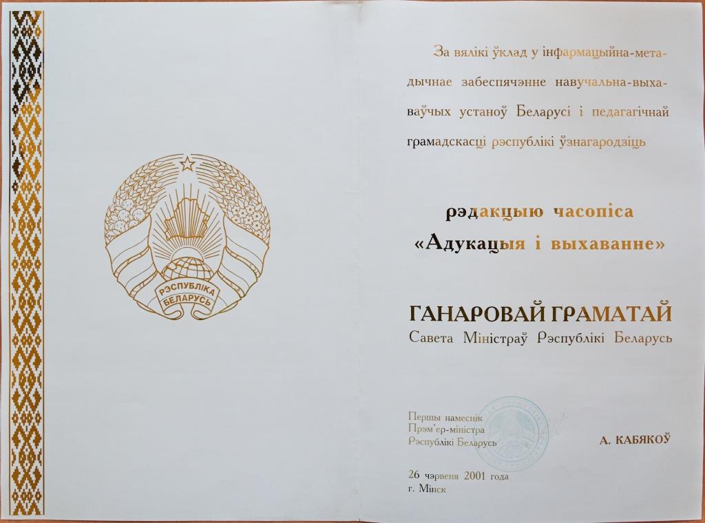 Издательство награждено Почетной грамотой Совета Министров Республики Беларусь за вклад в информационно-методическое обеспечение деятельности учебно-воспитательных учреждений Беларуси и педагогической общественности.
