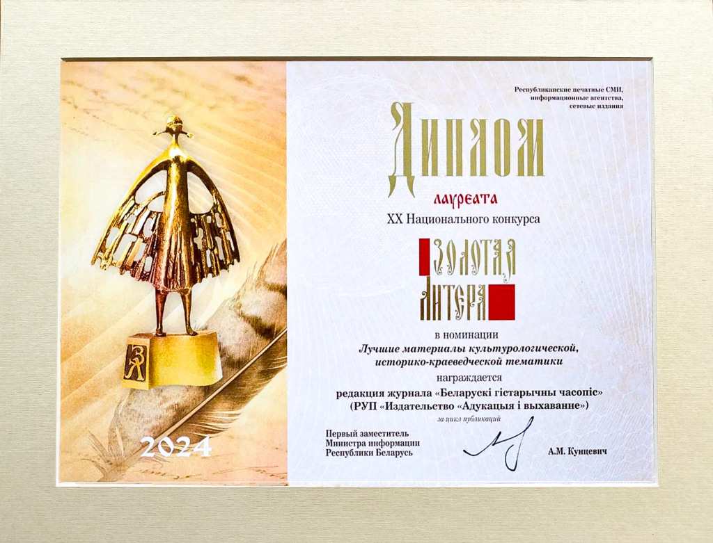 Редакция журнала «Беларускі гістарычны часопіс» отмечена дипломом лауреата в номинации «Лучшие материалы по тематике 80-летия освобождения Беларуси от немецко-фашистских захватчиков и Победы советского народа в Великой Отечественной войне».