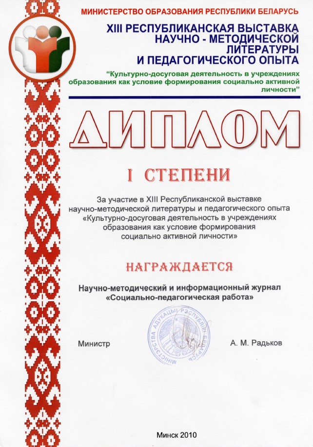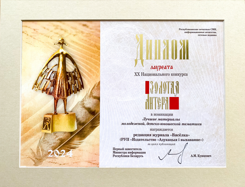 Диплома лауреата удостоена редакция журнала «Вясёлка» в номинации «Лучшие материалы молодежной, детско-юношеской тематики».