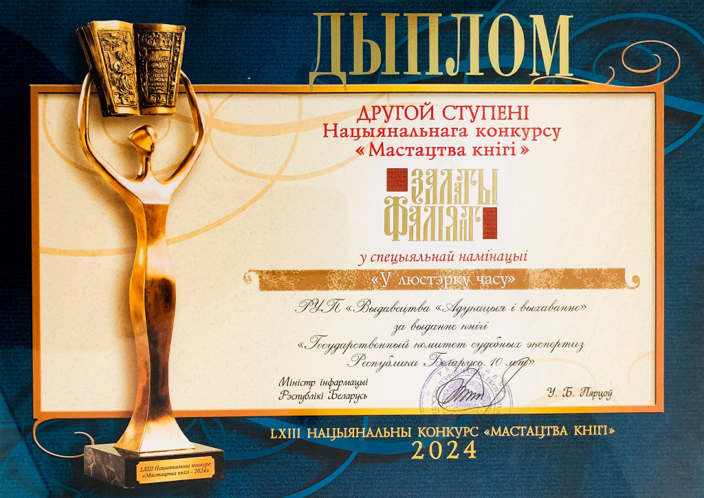 В номинации «У люстэрку часу» диплома II степени удостоилось издание «Государственный комитет судебных экспертиз Республики Беларусь. 10 лет».