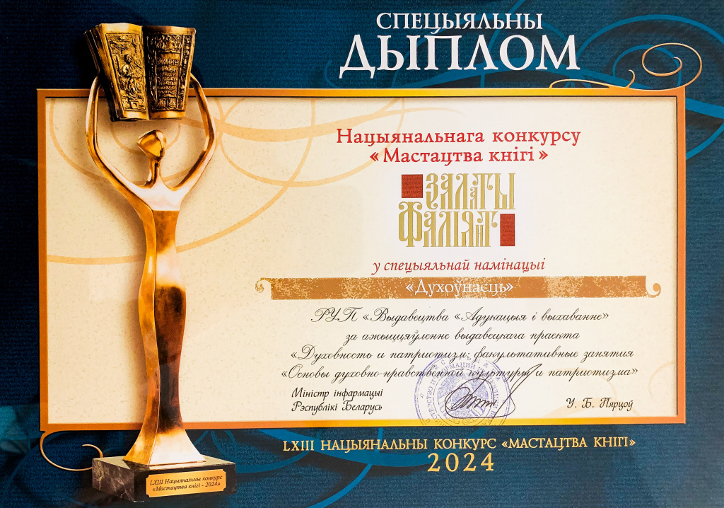 В номинации «Духоўнасць» издательский проект «Духовность и патриотизм: факультативные занятия „Основы духовно-нравственной культуры и патриотизма“» (Ф. П. Повный, Г. И. Николаенко, Е. Ю. Шимбалёва, И. В. Таяновская, А. М. Деменцевич, Т. Ф. Пашкович, Н. В. Васильченко) получил специальный диплом.