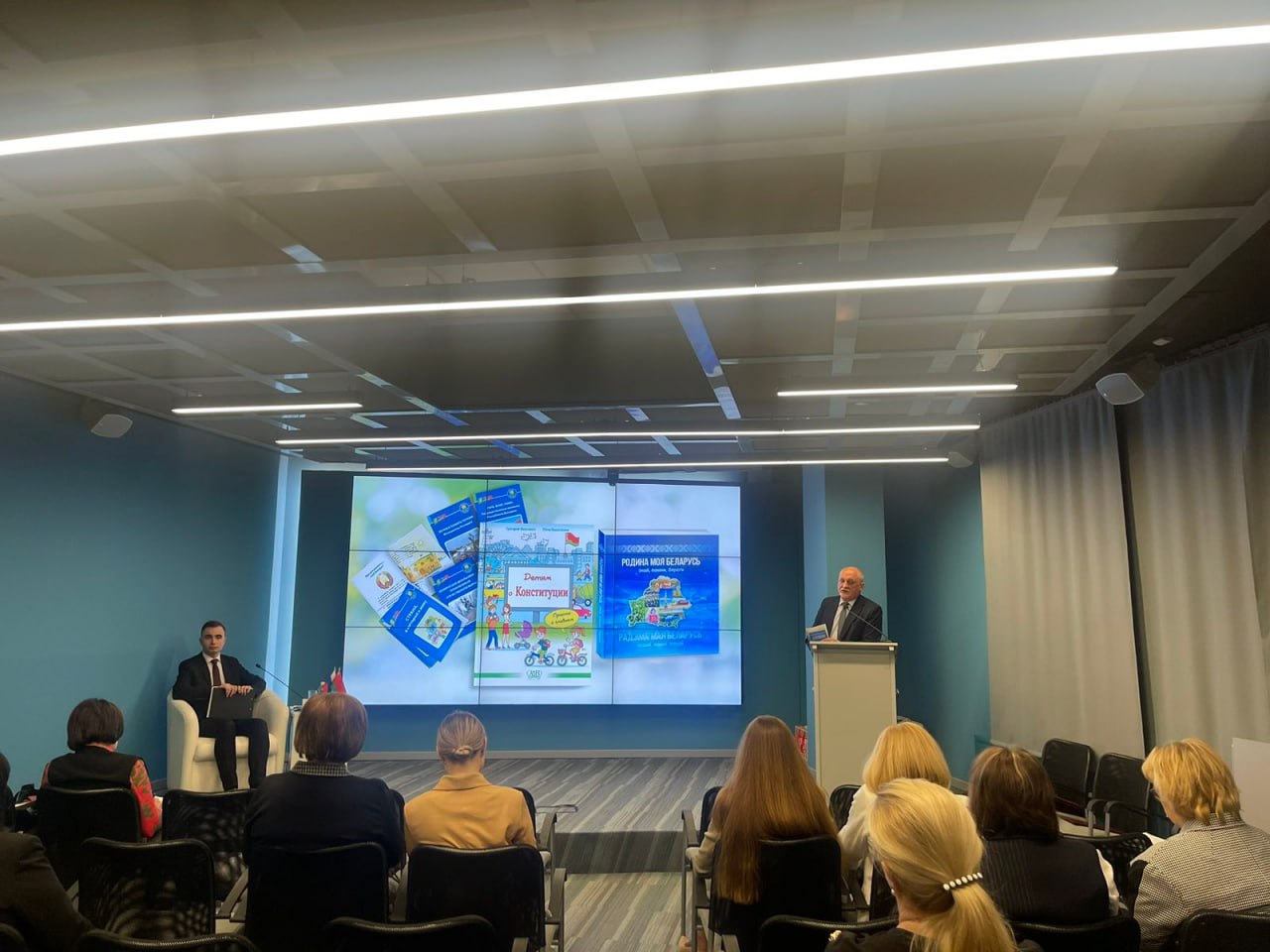 В рамках поездки представители издательства приняли участие в семинаре «СОЦИАЛЬНО АКТИВНЫЕ ТЕХНОЛОГИИ ВОСПИТАНИЯ ОБУЧАЮЩИХСЯ. ОПЫТ. ПЕРСПЕКТИВЫ», который прошел 18 апреля в Деловом и культурном комплексе Посольства Республики Беларусь в Российской Федерации.