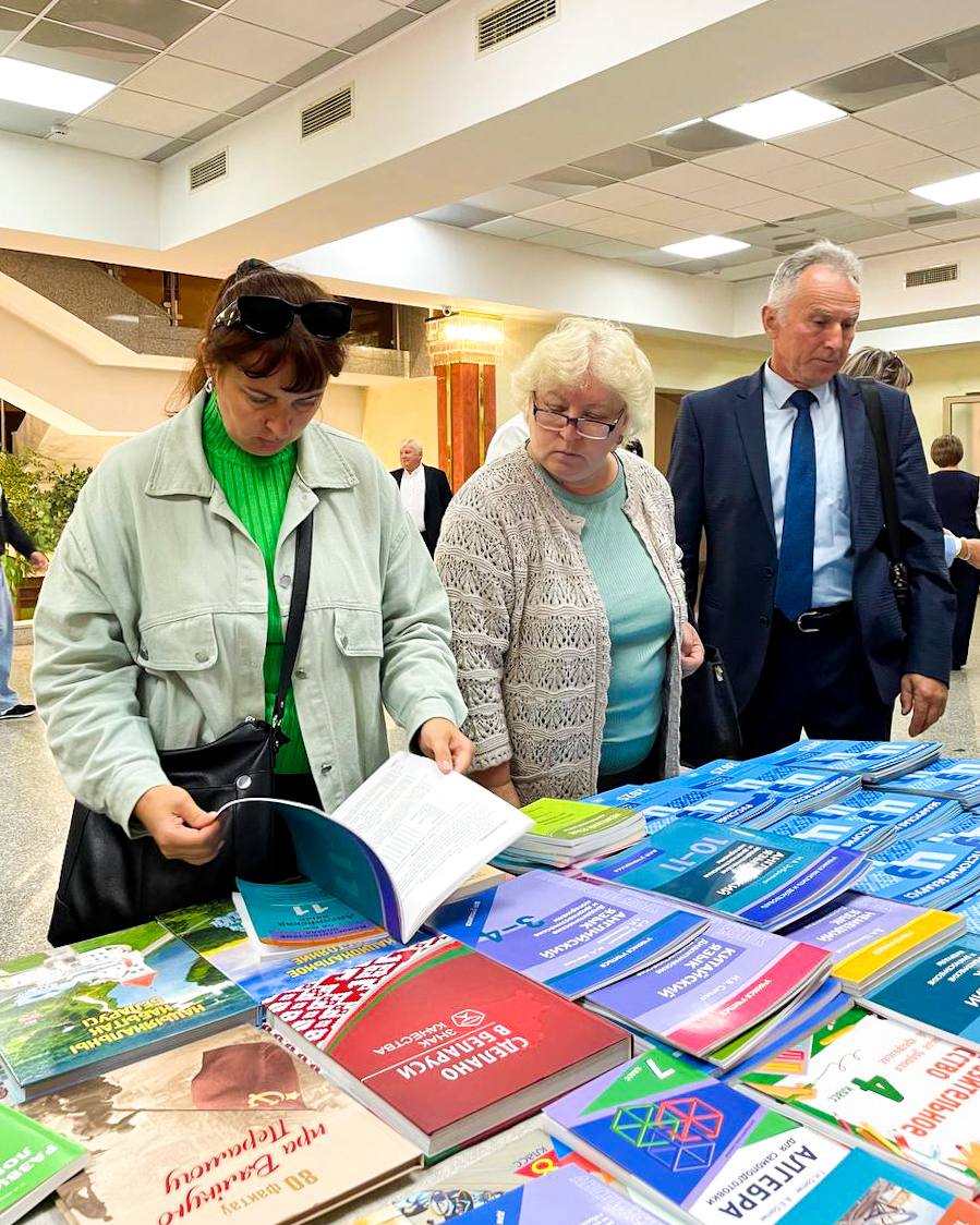 Основной программе августовского форума предшествовала выставка-продажа изданий нашего издательства, в ходе которой педагоги знакомились с книжными проектами, получали консультации по подбору литературы к новому учебному году, общались с авторами, оставляли фото на память и приобретали новинки. Особый интерес вызвали сборники тестов 2025 года для подготовки к ЦТ/ЦЭ, а также периодические издания.
