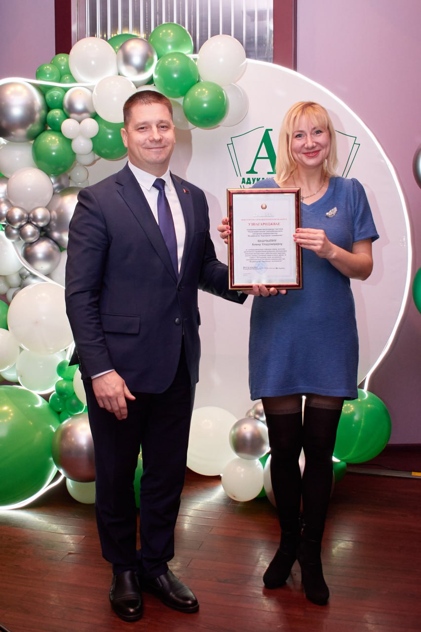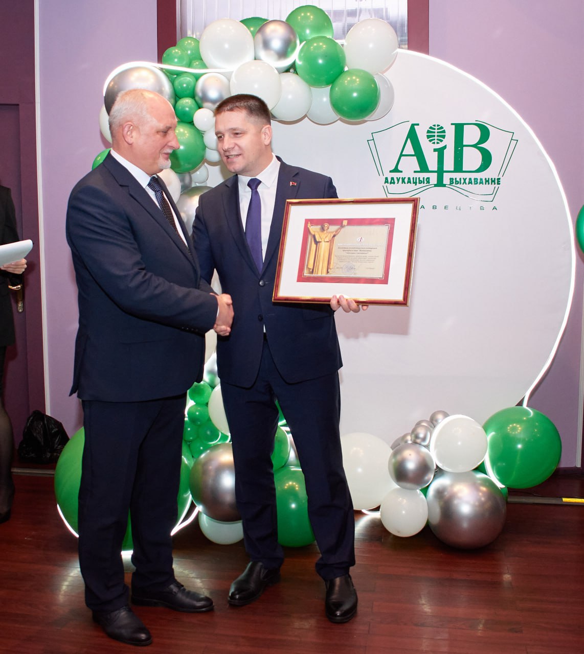 Заместитель Министра образования Республики Беларусь Александр Владимирович Кадлубай вручил Благодарность коллективу издательства «Адукацыя і выхаванне» за высокий профессионализм, добросовестный труд в сфере книгоиздания, плодотворную деятельность по реализации проектов, содействующих воспитанию у молодежи гражданственности и патриотизма, укреплению духовных ценностей и нравственных традиций.