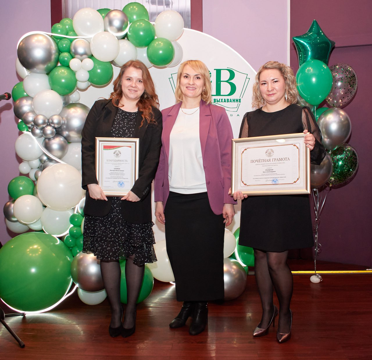 Почетную грамоту Администрации Партизанского района г. Минска вручили ЕГОРОВОЙ Виктории Анатольевне, заместителю начальника планово-экономического отдела; КОЗЛОВИЧ Галине Николаевне, ведущему редактору стилистическому журнала «Пачатковае навучанне: сям’я, дзіцячы сад, школа»; ШЕБЕКО Римме Болеславовне, главному бухгалтеру.