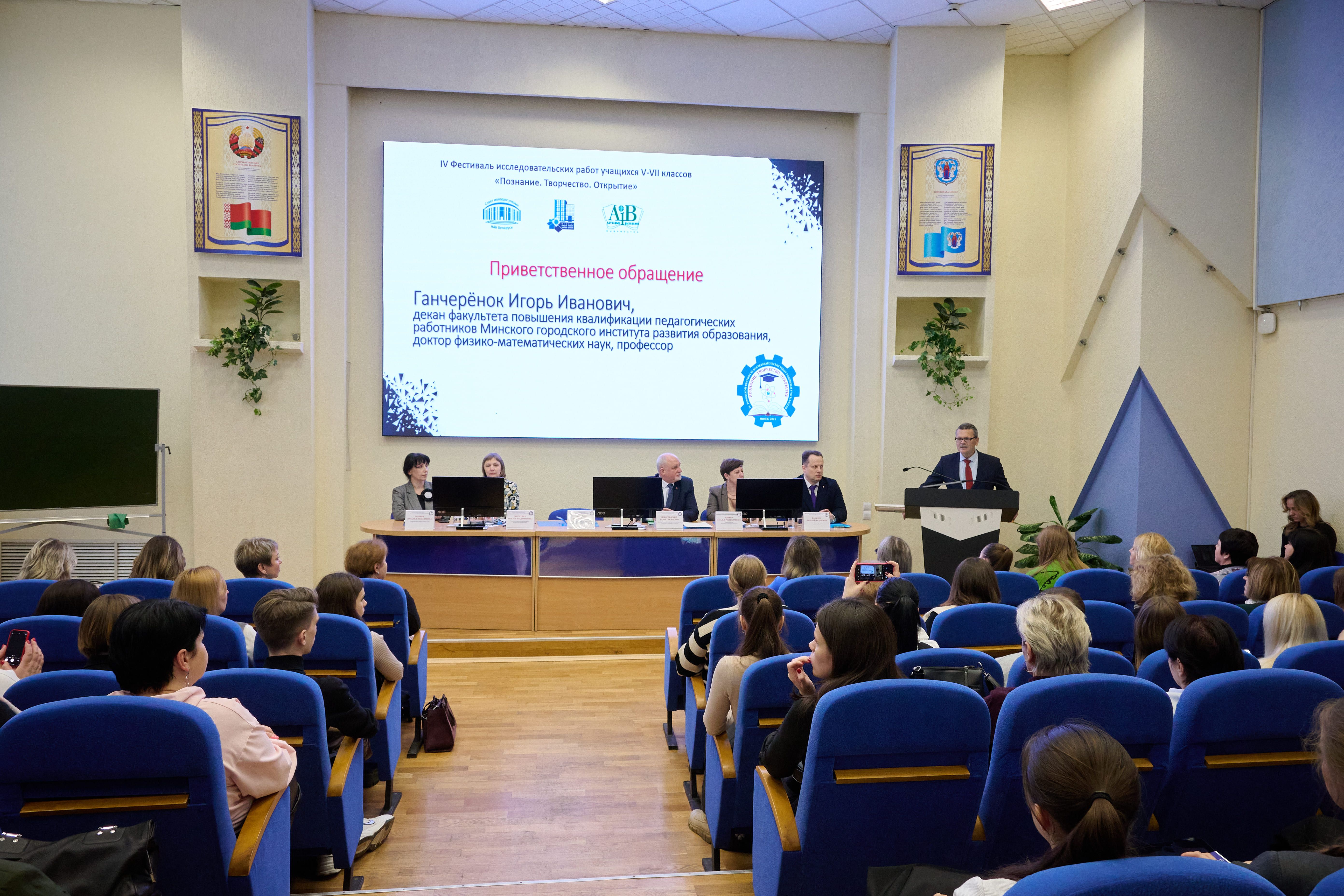 С приветственным словом к участникам мероприятия обратился декан факультета повышения квалификации педагогических работников МГИРО, доктор физико-математических наук, профессор И.И.Ганчеренок. «Мы маленькая страна, но нам нужно стремиться к большим открытиям. Необходимо работать над тем, чтобы достижения воспитанников становились публичными», – подчеркнул декан факультета.