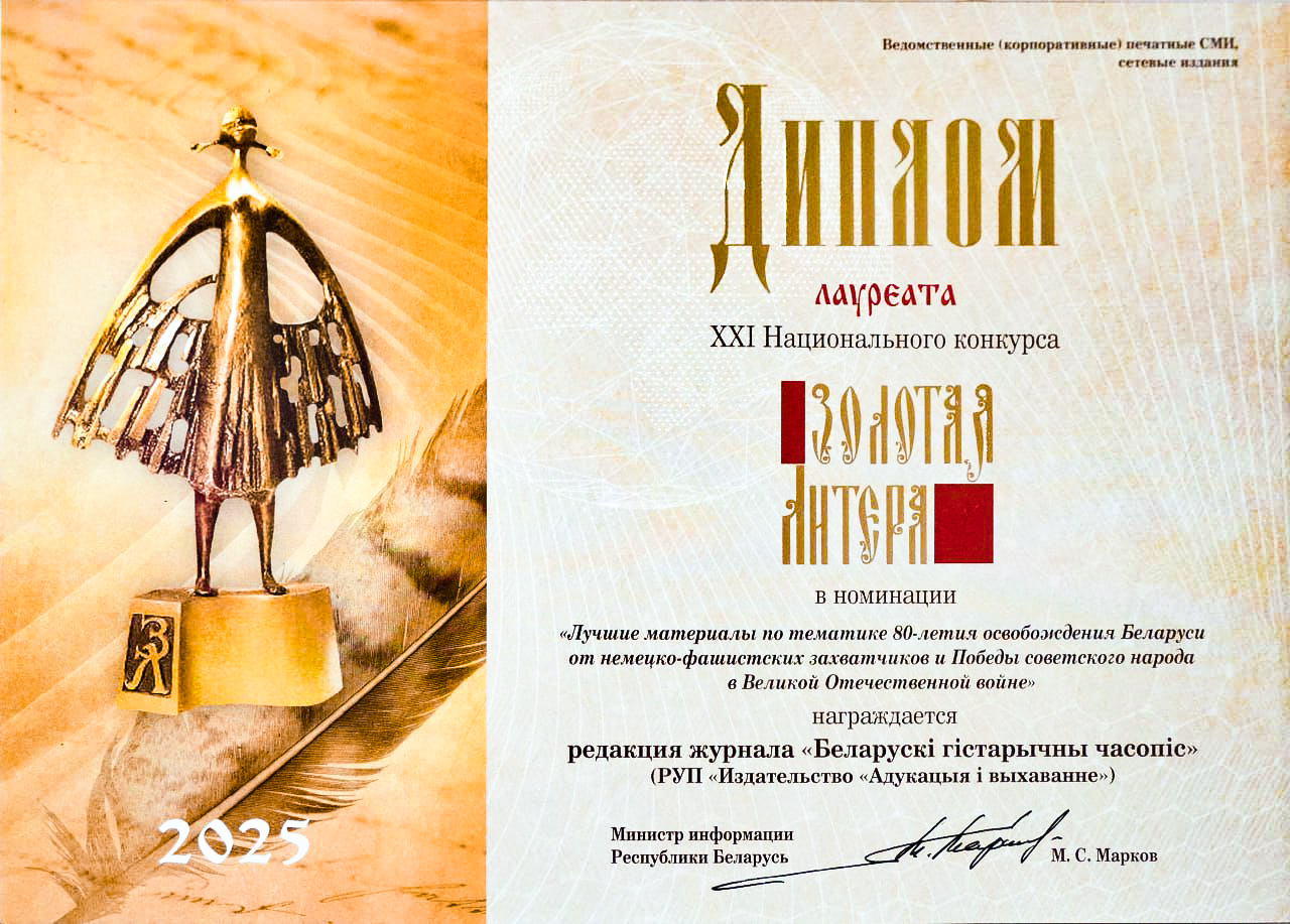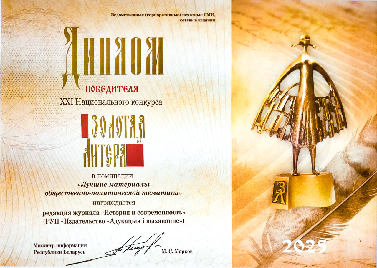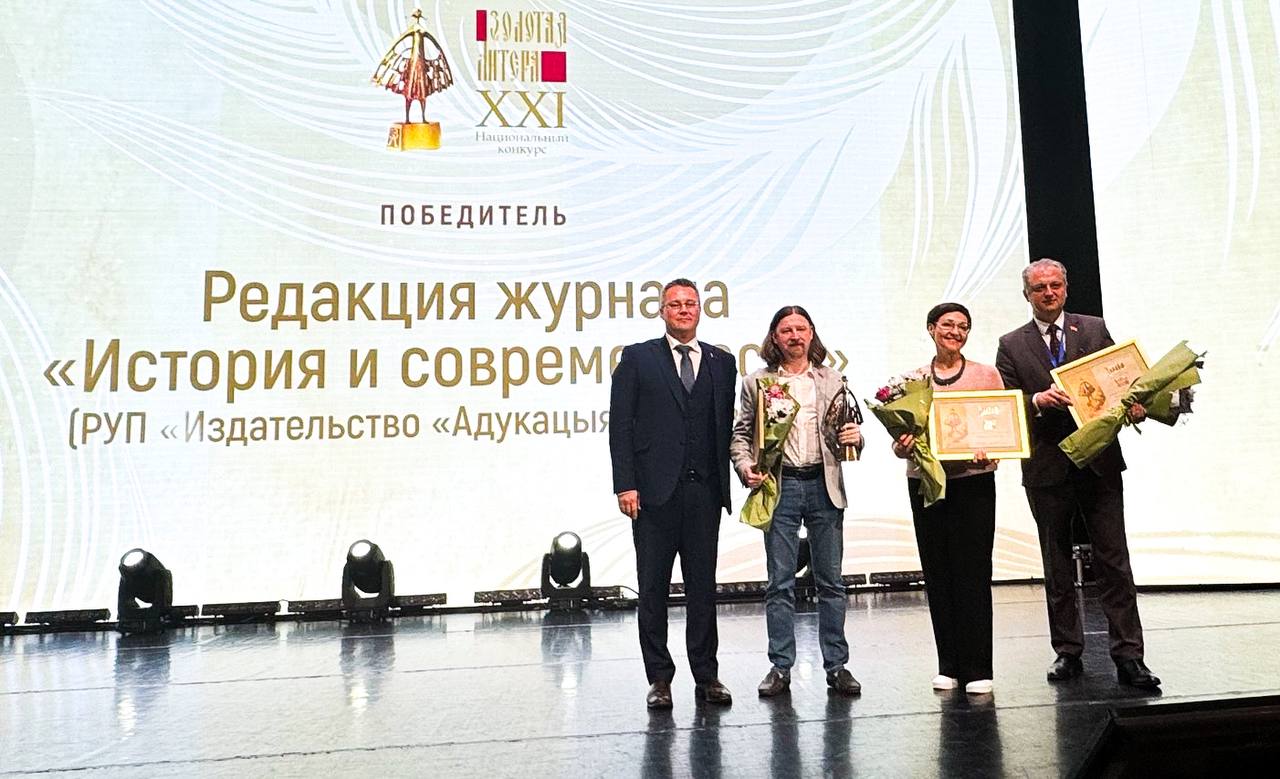 На торжественной церемонии награждения были объявлены победители XXI Национального конкурса «Золотая литера». Редакция журнала «История и современность» одержала победу и получила Золотую Литеру в номинации «Лучшие материалы общественно-политической тематики». Диплома лауреата удостоена редакция журнала «Вяселка» в номинации «Лучшие материалы молодежной, детско-юношеской тематики». Редакция журнала «Беларускі гістарычны часопіс» отмечена дипломом лауреата в номинации «Лучшие материалы по тематике 80-летия освобождения Беларуси от немецко-фашистских захватчиков и Победы советского народа в Великой Отечественной войне».