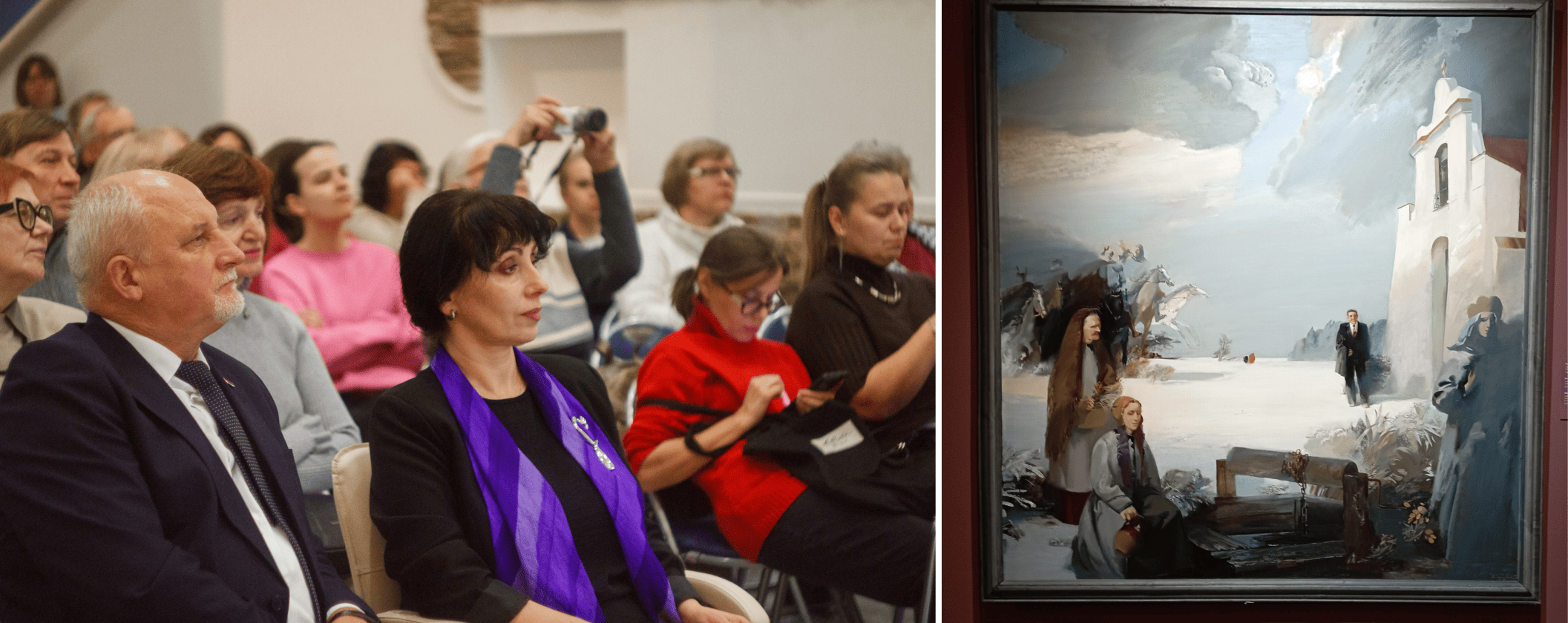 Так, у межах “Арт-лекторыя” (сталай часопіснай рубрыкі, што працуе і ў афлайн-фармаце) прагучала лекцыя “Уладзімір Караткевіч у творах збору Нацыянальнага мастацкага музея Рэспублікі Беларусь” вядучага навуковага супрацоўніка музея Настассі Трафімчык. Дарэчы, госці мелі магчымасць убачыць жывапіснае палатно мастака Уладзіміра Тоўсціка пад назвай “І проста лягу пад белы снег... Памяці Уладзіміра Караткевіча”, што адкрывае роднасловаўскі нумар-альманах і толькі на час святкаванняў пакінула фонды музея.