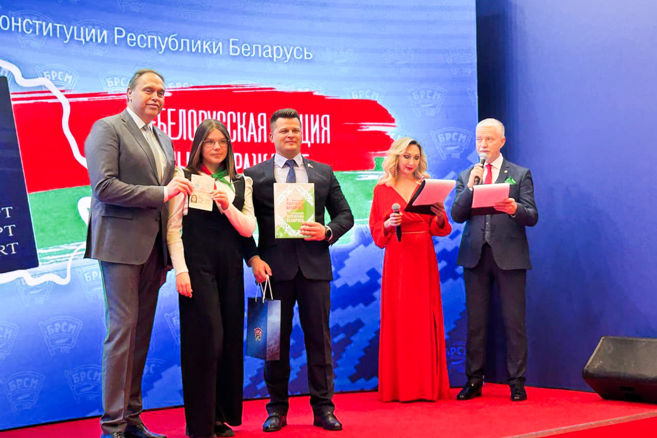 В рамках Всебелорусской патриотической акции «Мы – граждане Беларуси» Заместитель Премьер-Министра Беларуси В.С. Караник и Первый секретарь ЦК ОО «БРСМ» А.С. Лукьянов вручили школьникам главный документ гражданина страны – паспорт. А вместе с ним юные участники события получили значимый проект издательства «Адукацыя і выхаванне» – книгу «Я – гражданин Республики Беларусь».