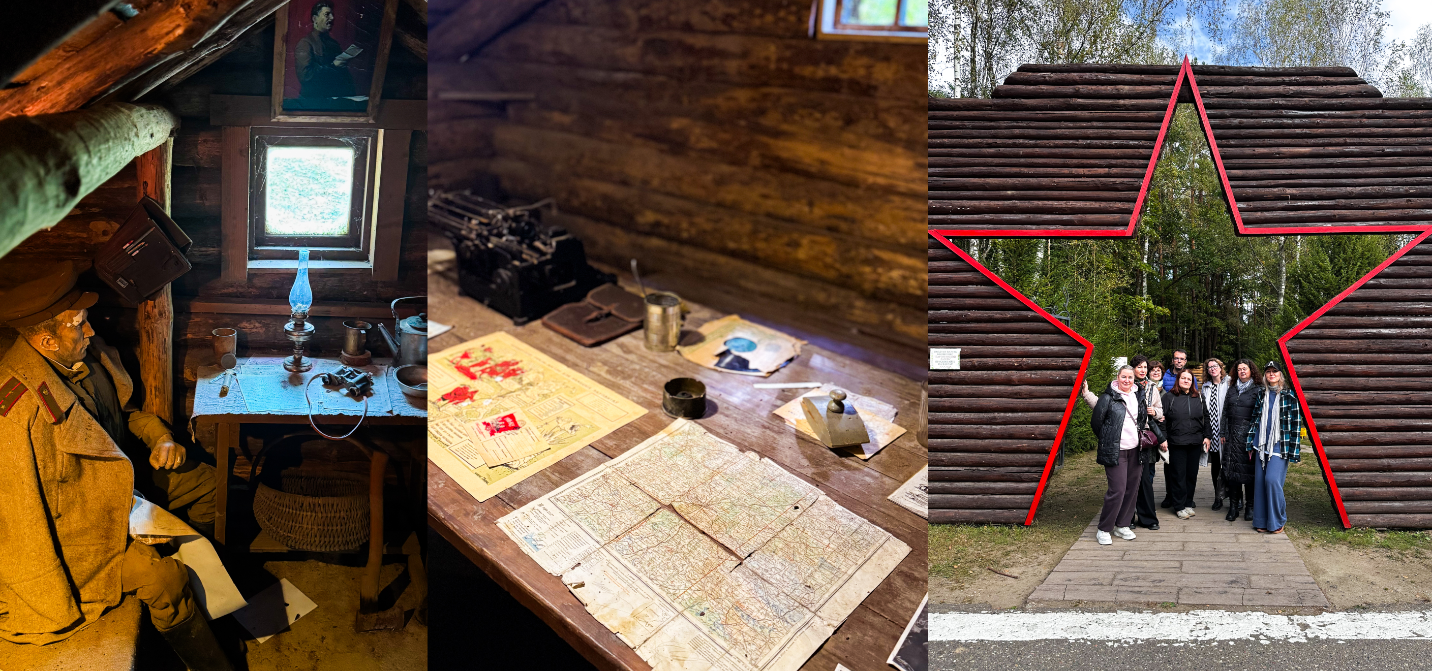 Для работников издательства была проведена экскурсия по партизанскому лагерю. В настоящее время реконструкция музея включает строения, выполненные в натуральную величину и в строгом соответствии с документальными источниками.