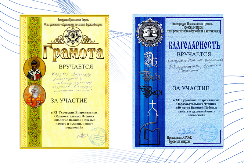 По результатам Чтений А.А. Корзюк был награжден Грамотой отдела религиозного образования и катехизации Туровской епархии, Н.В. Матусeвич вручена Благодарность отдела.