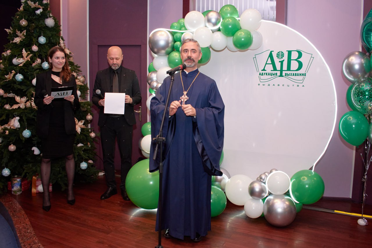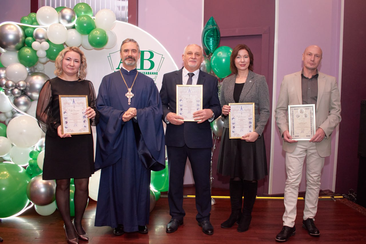 Грамоты НОВОГРОДСКОМУ Валентину Яновичу, директору издательства «Адукацыя і выхаванне»; ВАНИНОЙ Ольге Владимировне, главному редактору журнала «Здоровый образ жизни»; ПРАХОДСКОЙ Ольге Александровне, начальнику отдела допечатной подготовки, от общины «Приход в честь Всех Святых в г. Минске» Минской Епархии Белорусской Православной Церкви вручил Заместитель председателя Синодального информационного отдела Белорусской Православной Церкви клирик Всехсвятского прихода столицы отец Александр. Благодарности общины удостоился ШЕСТОВСКИЙ Константин Кимович, главный художник.